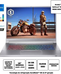 - Placa de vídeo: NVIDIA GeForce RTX 3060 com 6 GB GDDR6