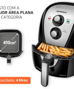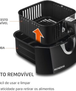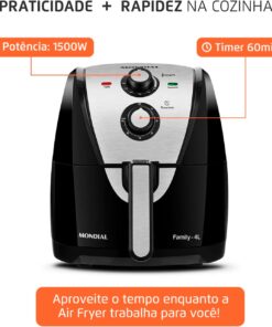 - DESIGN COMPACTO: A Air Fryer Mondial tem um design compacto e ocupa espaço reduzido na bancada da cozinha.