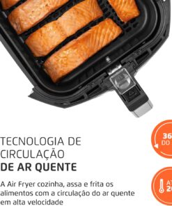 - CONTROLE DE TEMPERATURA ATÉ 200°C: Permite a escolha da temperatura ideal para diferentes tipos de alimentos.